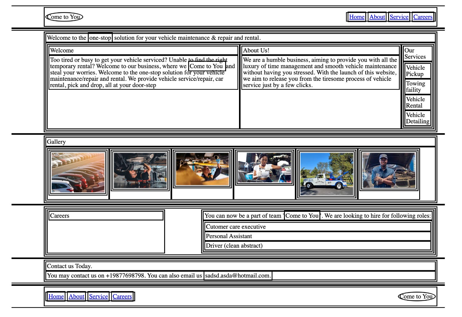 My client was a company that acted as middlemen for people who want their vehicle serviced and the mechanic garage. They wanted a website for more local recognition. And since this client was represented by my friend, he had his own stupid demands. He wanted a google form (my mentor denied it as I lacked knowledge) and a Careers section indicating that they were hiring. The latter part was do-able so I went with it.