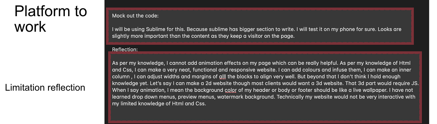 So if we were to talk about it in large, I made my website over 4 different days. So it’s best to explain it in large different steps. Right? Before I do that, I will attach some pictures here to show my thought process.